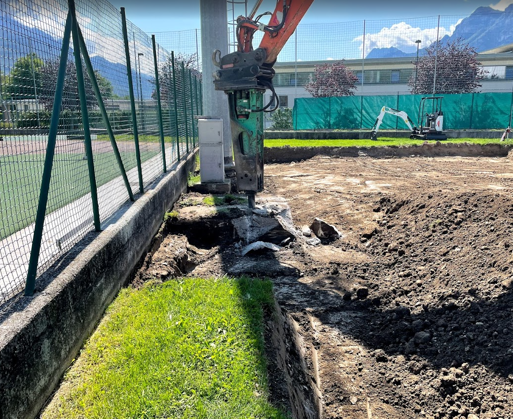 L’intervento consiste nella riqualificazione e ottimazione del campo da tennis, con particolare attenzione alla preparazione del terreno e alla sistemazione delle superfici.
